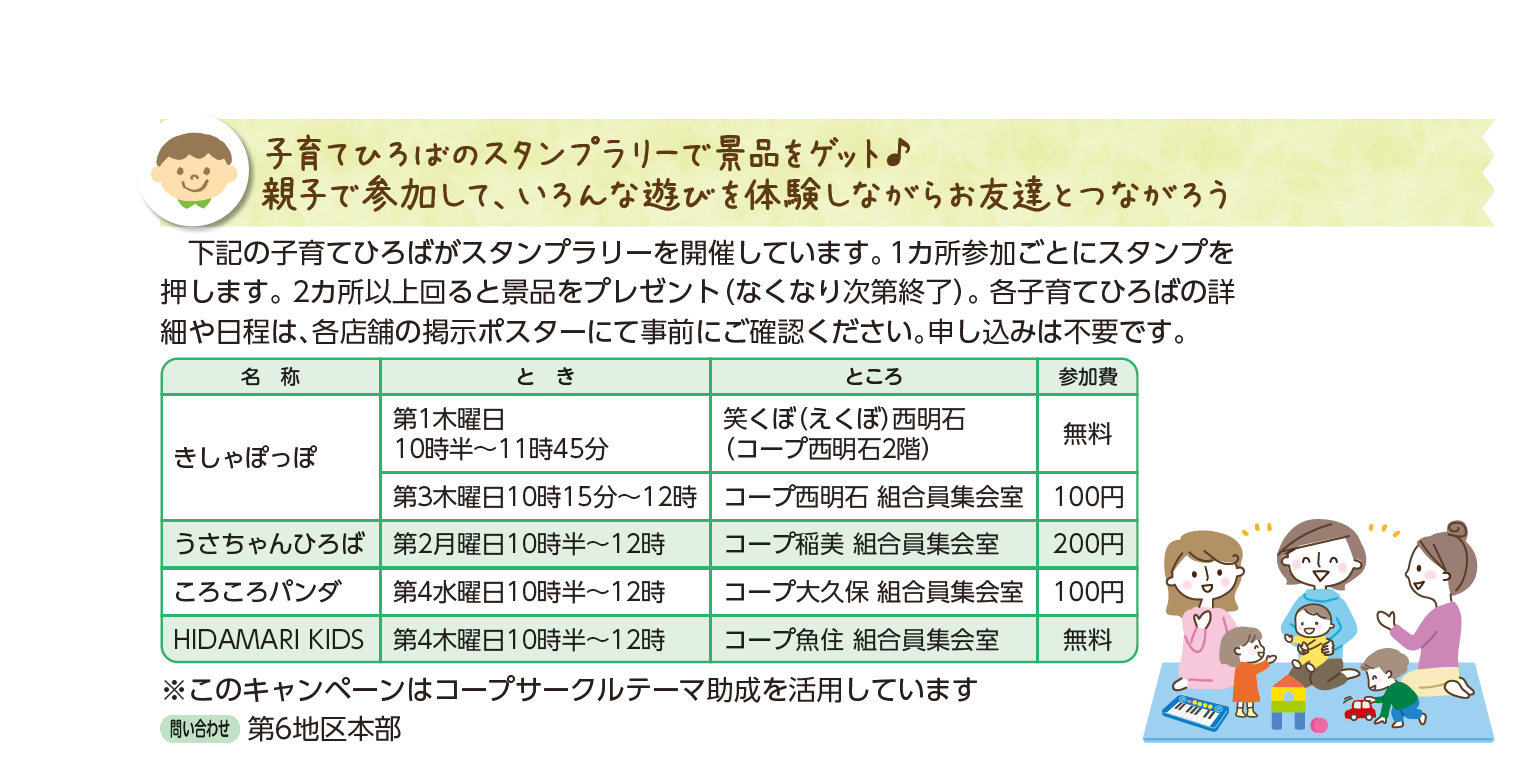 上記記載の子育てひろばがスタンプラリーを開催しています。